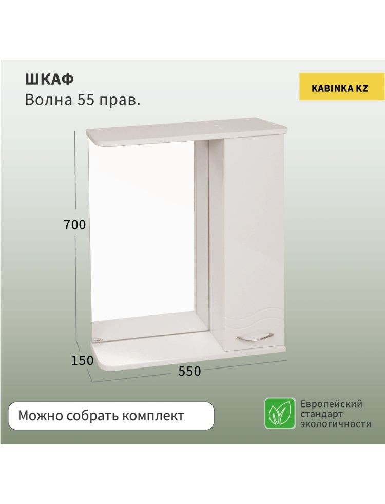 Шкаф навесной KABINKA.KZ Волна 55 правый, 55x15.7x70 см, белый