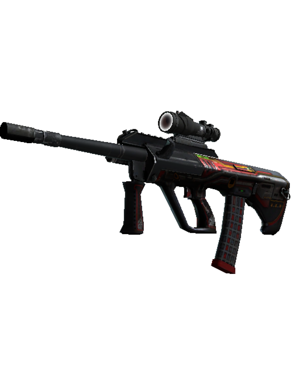 A PowerFul and Accurate Rifle with The Optical Sight Aug Compensates for Its Long Reloading with A Low Spread of Bullets and High Rate of Fire. Painted by the Famous Artist Sid Mid.In the past, he simply showed us the figure, now he put it in out.Float: 0.669812Type: RifleRarity: classifiedExterior: Battle Scarred