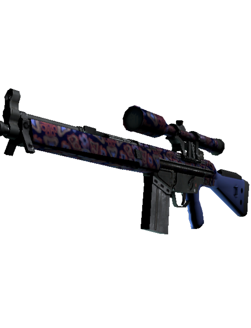 Exterior: Minimal WearThe pricy G3SG1 lowers movement speed considerably but compensates with a higher rate of fire than other sniper rifles. A pattern of orange and blue Murano beads has been applied. Death by a thousand beadsThe Canals Collection