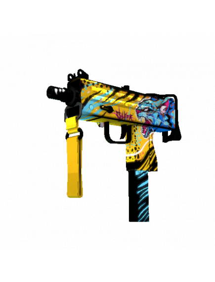 The MAC-10 submachine gun looks like a box from which bullets fly. It boasts a high rate of fire, but you will have to pay for this with low accuracy and strong dedication. A pattern of neon blue cat and yellow-black stripes is applied to the case.Kitty kittyFloat: 0.146089Type: SMGRarity: CoverTExterior: Minimal Wear