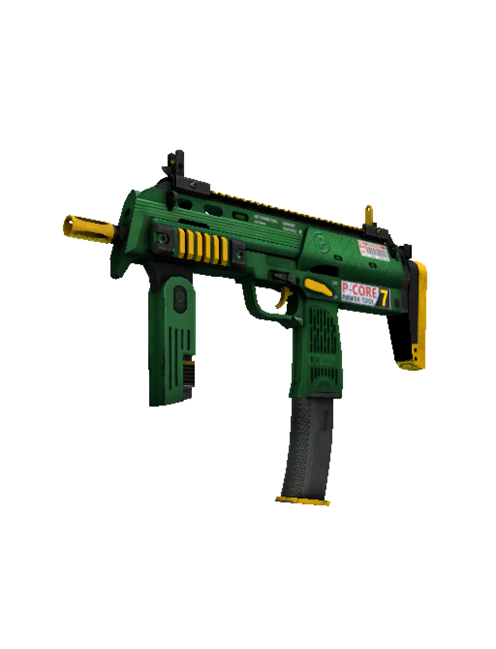A universal, but expensive MP7 machine gun, MP7, is an ideal choice for a shootout at close distances. The case is painted green, and some parts are highlighted with yellow paint.Rule number two - never argue in publicFloat: 0.146057Type: SMGRarity: RestrictedExterior: Minimal Wear