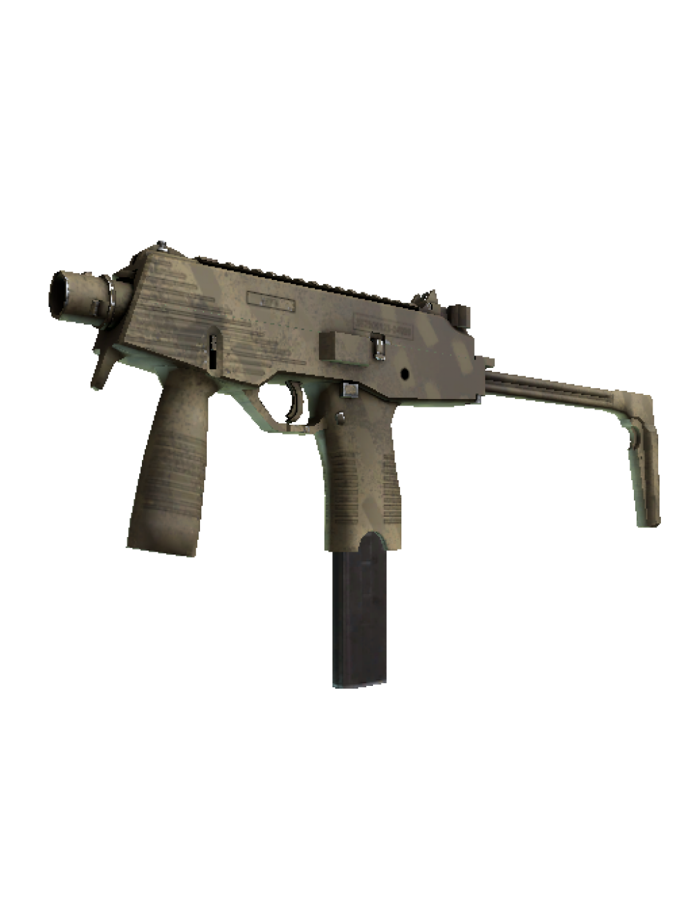 The MP9 advanced pistol produced in Switzerland is an ergonomic polymer weapon used by private security companies. The drawing is applied by a spray can using a stencil of pieces of adhesive tape.Float: 0.069117Type: SMGRarity: Consumer GradeExterior: Factory New