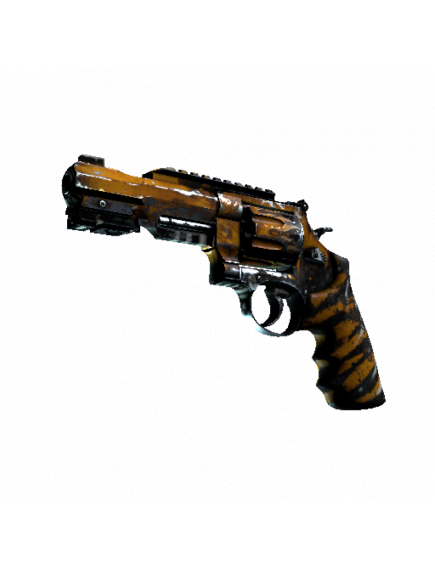 The R8 revolver shoots extremely accurately and powerfully, but its trigger is sadly known for its tightness. If the enemy is already close, do not hesitate to beat the trigger. A drawing of yellow flame was manually applied to the case, supplementing it with red and white strokes."Wider Ro-o-o-oh!"Float: 0.471899Type: PistolRarity: classifiedExterior: Battle Scarred