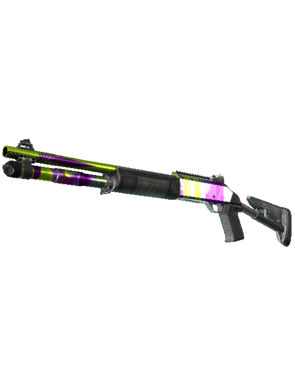 The XM1014 is a powerful, fully automatic shotgun that justifies its hefty size by quickly filling a room with lead. A random pattern of yellow-green, purple, and silver has been applied to the body.Just a little bit of anarchyfloat: 0.129609Type: ShotgunRarity: RestrictedExterior: Minimal Wear