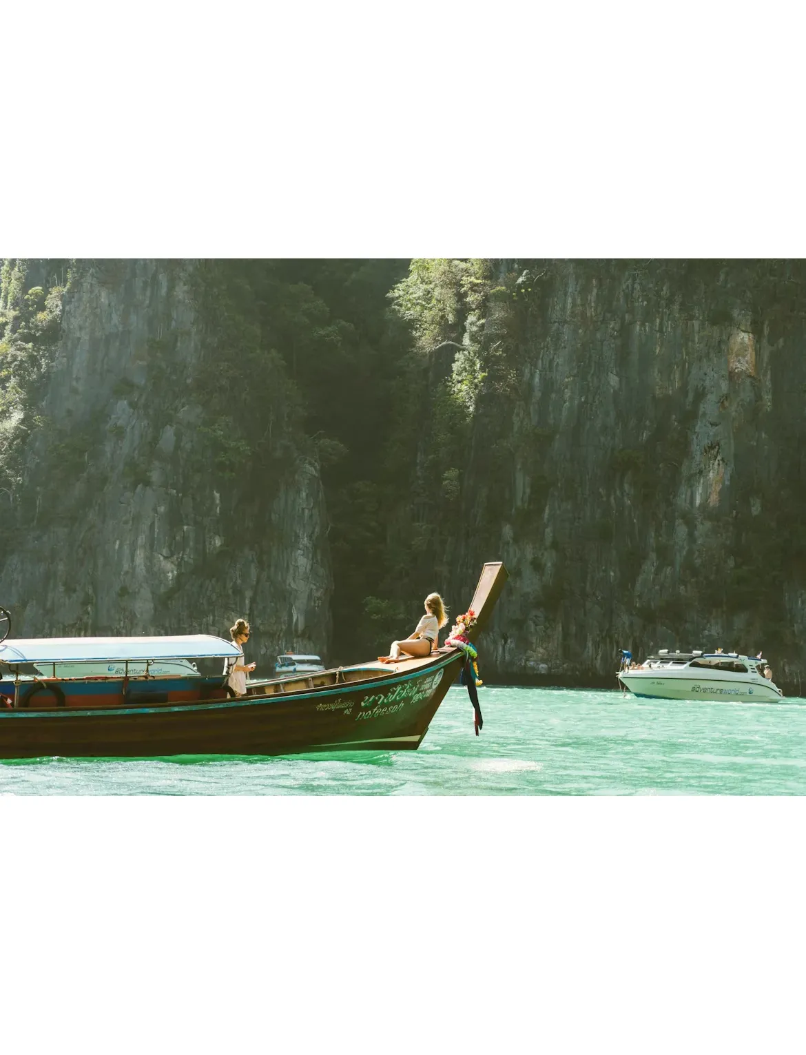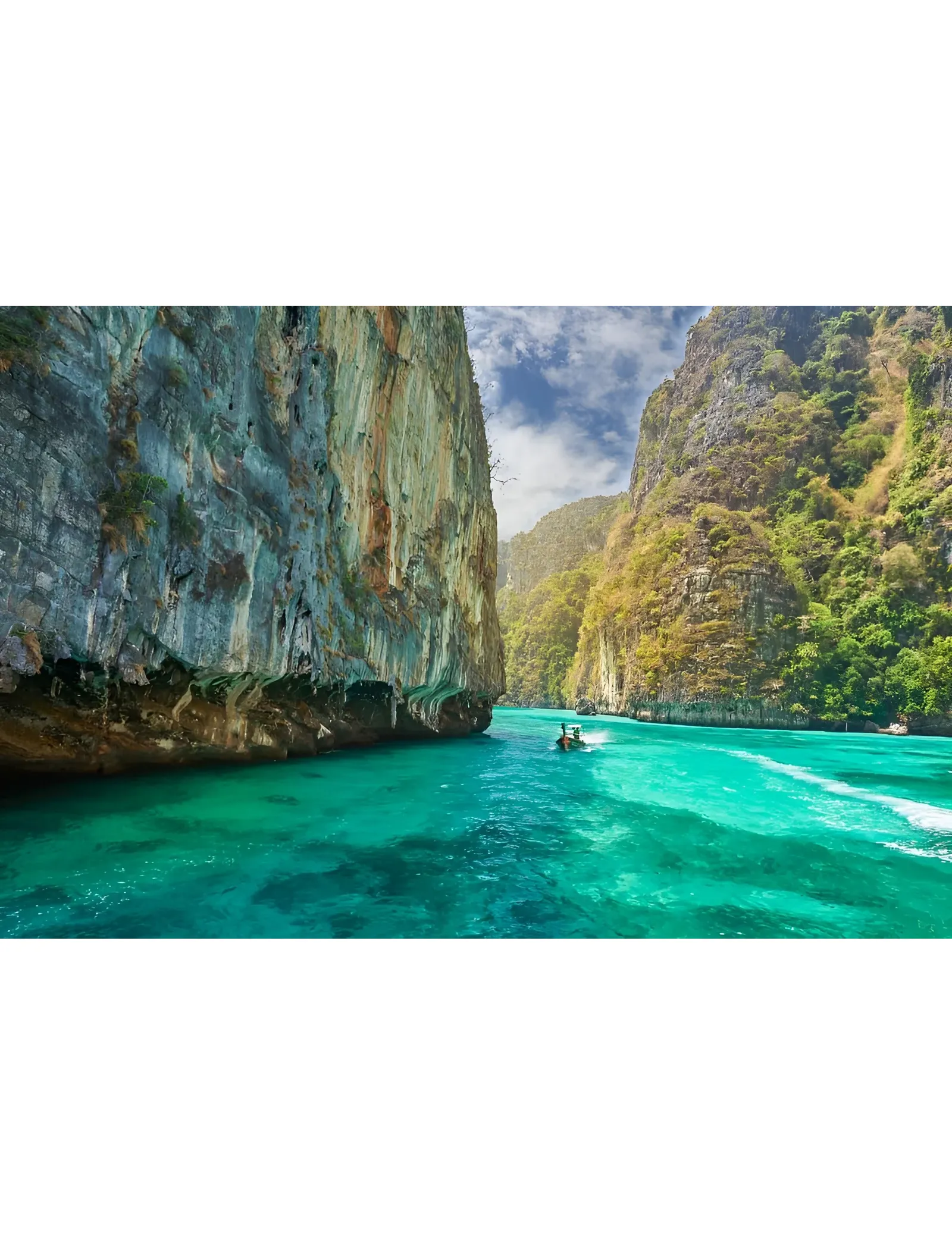 - 09:00 программа на островах архипелага Пхи Пхи. Высадка в бухте Мая Бей, купание и снорклинг в лагуне Пхи Лей, осмотр пещеры Викингов, снорклинг воле острова Пхи Пхи Дон, осмотр пляжа обезьян)