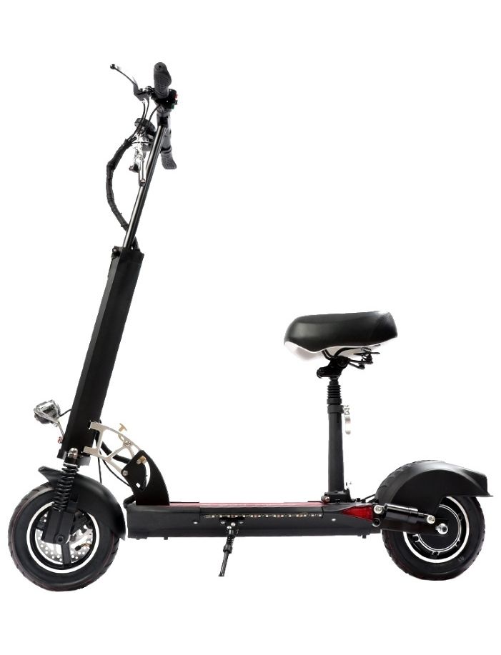 Мотор-колесо на электродвигателе 500W дает отличные тяговые характеристики и позволяет развивать скорость до 50 км/ч. Увеличенный аккумулятор 20 Ач обеспечивает большой пробег до 58 км без необходимости подзарядки. Данную модель электрического самоката часто используют, как портативное транспортное средство для долгих поездок.