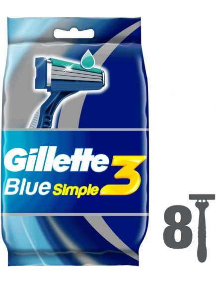 Gillette Одноразовые мужские бритвы Blue3 Simple, с 3 лезвиями в станке, 4 шт., с фиксированной головкой и смазывающей полоской. Высокоэффективная одноразовая мужская бритва Gillette Blue3 Simple с 3 независимо подвешенными лезвиями, которые при движении адаптируются к поверхности кожи для гладкого и комфортного бритья.