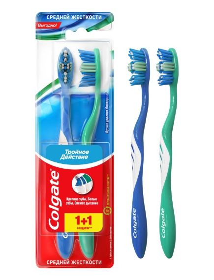Colgate Тройное действие зубная щетка средняя 2 шт