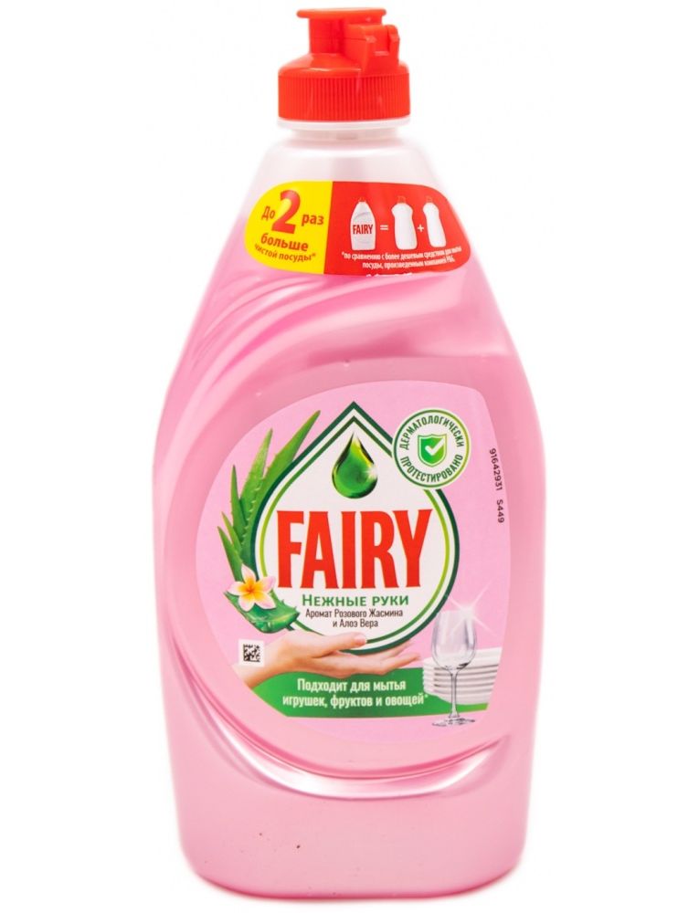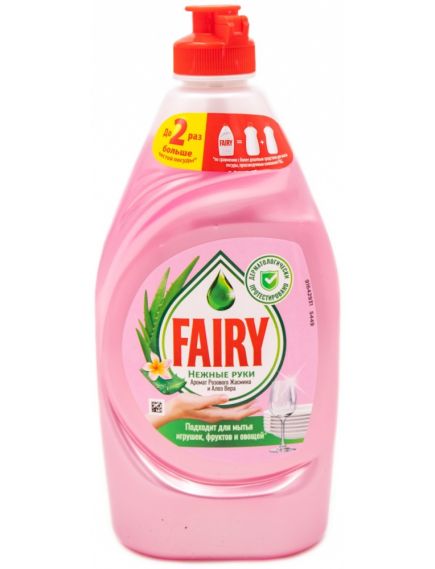 Средство для мытья посуды Fairy из линейки Нежные руки - ваш помощник в борьбе с жиром и сохранении нежности кожи. Гель для посуды с комбинированным ароматом розового жасмина и алоэ вера сделает повседневную задачу гораздо более приятной. Жидкость для мытья посуды из коллекции Нежные руки выбирают по этим причинам: основные достоинства геля - превосходное очищение посуды и забота о руках, ваша кухня будет пахнуть цветками розового жасмина и алоэ в процессе мытья посуды, за счет такого пенообразования гель может отмыть куда больше тарелок и столовых приборов, чем вы привыкли. Даже при чувствительной коже рук не нужно надевать резиновые перчатки. Насыщенная формула средства - залог сверкающей чистоты посуды.'Состав: 5-15% анионные пав, <5% неионогенные пав, консерванты, ароматизирующие добавки, гераниол