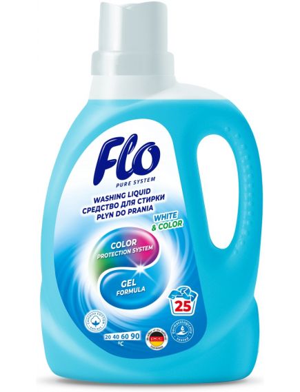 Жидкость для стирки FLO деликатное и эффективное средство. Специальная технология защиты цвета сохраняет темную и цветную одежду яркой дольше и предотвращает потерю цвета. Содержит экстракт хлопка. Ткани мягкие на ощупь, а цитрусово-цветочный аромат оставляет приятный эффект свежести. Чрезвычайно экономичный, эффективный при низких температурах, подходит для ручной стирки и стирки в стиральных машинах.'Состав: Вода, 5-15 % кПАВ, < 5% нПАВ, < 5% мыло,< 5% EDTA и его соль, < 5% консервант (метилхлороизотиазолинон, метилизотиазолинон), < 5% отдушка (бензилсалицилат, бутилфенилметилпропиональ, гексилциннамаль, лимонен, линалоол, альфа изо метиллонол).